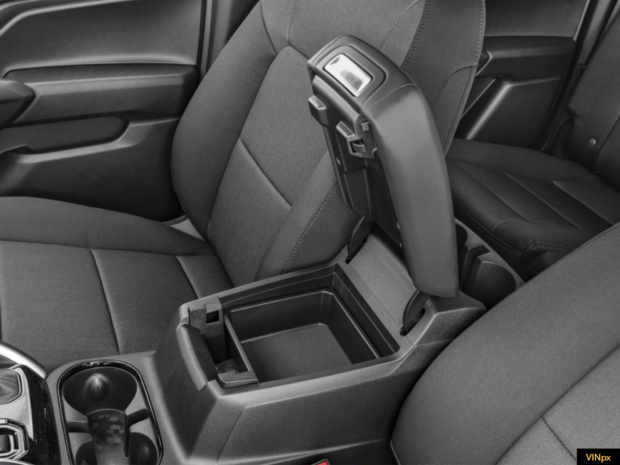 - Console, floor front compartment with cup holders and cell phone storage