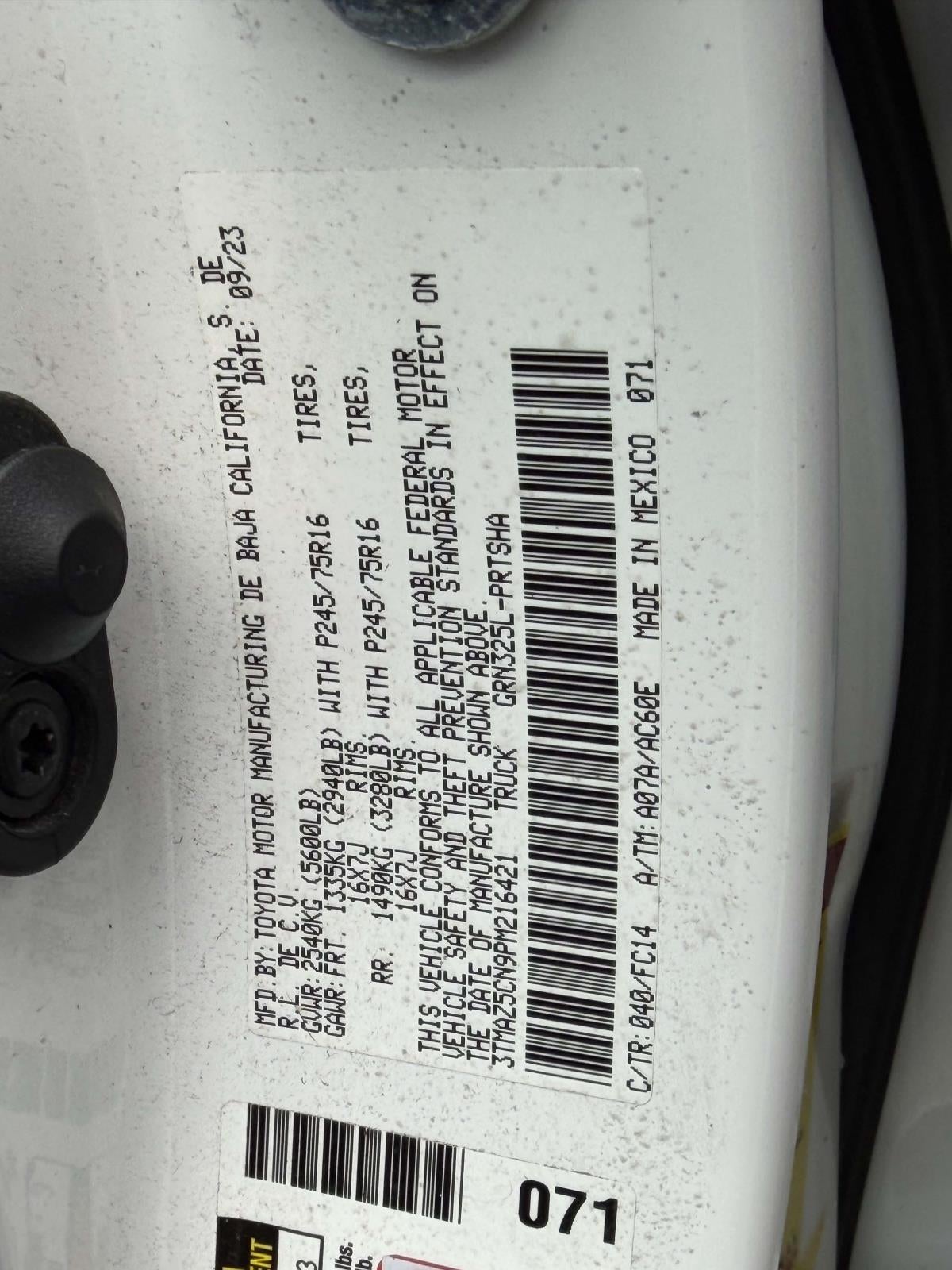 - Vehicle Name: Toyota Tacoma 2WD